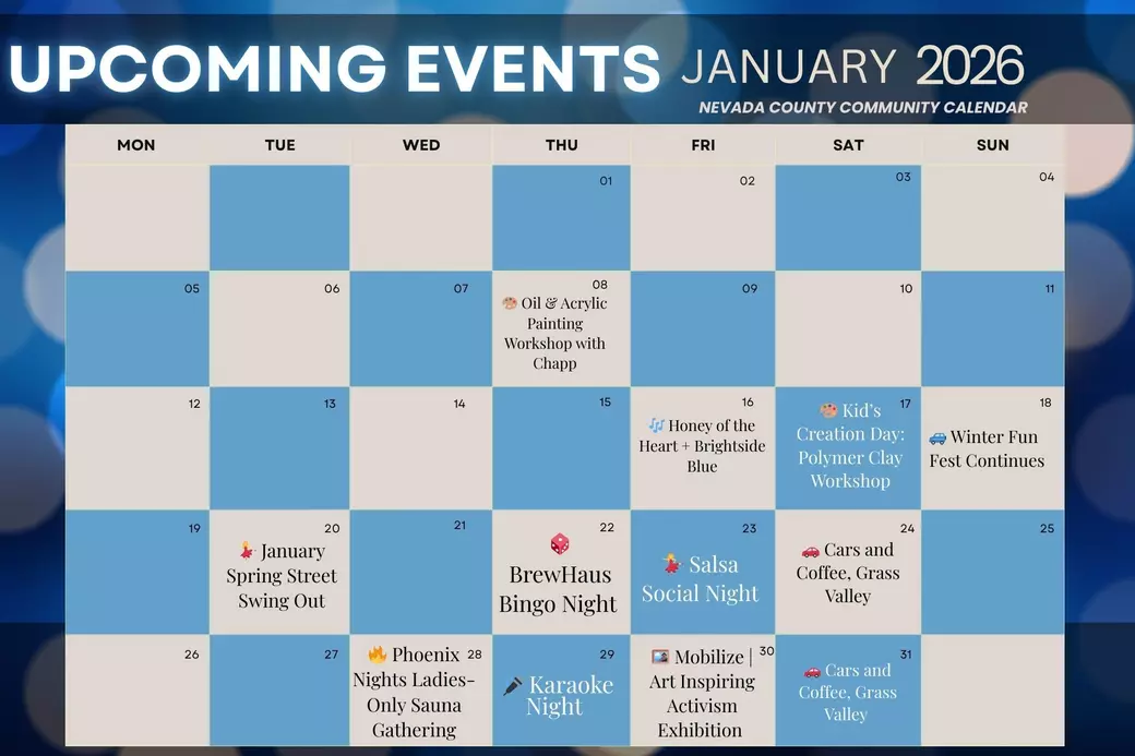 January is a beautiful time to reconnect with your community, try something new, and support local artists, musicians, and small businesses. Scroll down for the full list of local events, support small businesses, and start the new year connected to your Nevada County community ❤️Serving: